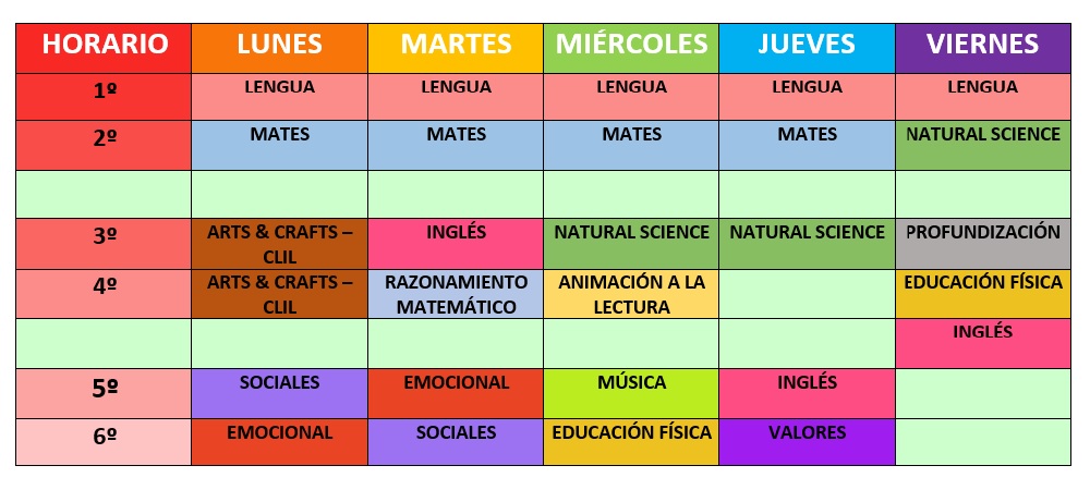 Para saber qué trabajar cada día, vamos a TENER PRESENTE NUESTRO HORARIO (véase en la imagen).
